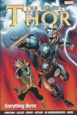 In Mephisto’s infernal domain the tempter believes he has discerned Loki’s grand scheme whilst in Vanaheim Freyja’s brooding unforgiving sister Gullveig receives an embassage and awesome gifts from an anonymous source. In Asgardia-above-Broxton a concerned council dispatches a party of warriors to investigate its Vanaheim province where the deeply symbolic Temple of Union is ablaze with flames that cannot be extinguished. However when Thor and his comrades Volstagg, Hogun and Fandral lead the mission to the distant conflagration they are attacked and routed by Gullveig and her Vanir troops using terrifying new weapons from another pantheon. The ancient feud is not only fully rekindled but spreading like wildfire…