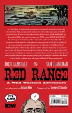 Red Range: A Wild West Adventure © 1999-2017 Joe R. Lansdale. “I Could Eat a Horse†© 2017 Sam Glanzman. “When Old is New and New Old†© 2017 Richard Klaw. “Beneath the Valley of the Klan Busters†and “A Brief History of Cowboys & Dinosaurs†© 2017 Stephen R. Bissette. All rights reserved.