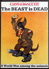 With both Editor Victor Dancette and writer Jacques Zimmermann providing scripts, and beginning as early as 1941, Calvo began translating the history of the conflict as seen from the sharp end into a staggeringly beautiful and passionately vehement dark fable, outlining the betrayal of the European nations by literal Wolves in the Fold.