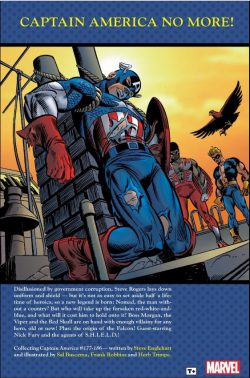 Sickened, shocked and stunned at the poisoned American Dream – and despite the arguments and advice of his Avenging allies – Steve Rogers searched his soul and realised he could not be the symbol of such a country. He threw off the costume and rank to wander the country bereft of ideals or direction…