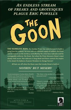 This initial collection – available in paperback and digital formats – gathers and resurrects The Goon #1-4 and the Goon Color Special, (originally published by Albatross Exploding Funny Books in 2002) plus a short story from the last issue of anthology title Dark Horse Presents.