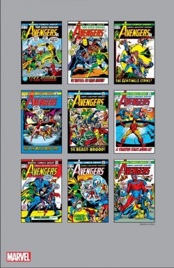 Graced with a scene-setting Preface from outgoing scripter Roy Thomas and context-creating Introduction from new kid Steve Englehart, this sturdy hardcover and eBook compilation gathers the astounding contents of Avengers #89-100 (collectively spanning July 1972 – May 1973) and includes a cross-over moment from Daredevil and the Black Widow #99.