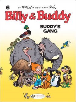 As Billy and Buddy, the strip had returned to British eyes in enticing Cinebook compilations from 2009 onwards: introducing to 21st century readers an endearingly bucolic late 20th century, sitcom-styled nuclear family set-up consisting of one bemused, long-suffering and short-tempered dad, a warmly compassionate but painfully flighty mum, a smart, mischievous son and a genius dog who has a penchant for finding bones, puddles and trouble.