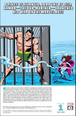When Stan Lee & Jack Kirby started reinventing comic-books in 1961 with the Fantastic Four, they revived the all-but-forgotten awesome amphibian as a troubled, semi-amnesiac, and decidedly more regal, if not grandiose, antihero. The returnee despised humanity; embittered at the loss of his sub-sea kingdom (seemingly destroyed by American atomic testing) whilst simultaneously besotted with the FF‘s Sue Storm.