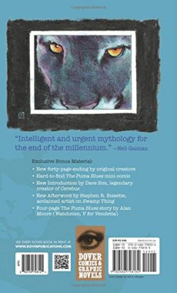 Proffering an increasingly strong but never strident message of environmental duty and responsibility, The Puma Blues outlined its arguments and questions as a staggeringly beautiful and compelling mystery play which ran for 23 formal issues, a Benefit special designated “Eat or Be Eaten†and a tantalisingly half-sized #24 before the exigencies of publishing made it extinct.