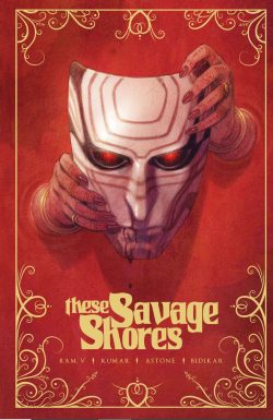 His stellar trajectory was enhanced by two projects for America’s Vault Comics: Radio Apocalypse and – spanning October 2018 to October 2019 – 5-issue miniseries These Savage Shores. Illustrated by Sumit Kumar, coloured by Vittorio Astone and lettered by Aditya Bidikar, this brooding, violent tale of timeless love and undying monsters is an historical drama tainted with horror overtones, combining gothic pastiche with the enticing mystique of colonial India, even if the events actually occur in the years before England officially conquered the “Sub-Continent” and became the British Empire…
