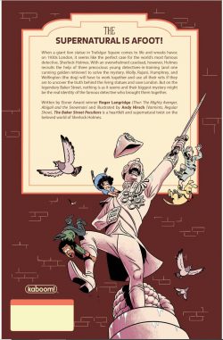Tailor’s granddaughter Molly Rosenberg, orphan street thief Rajani Malakar and neglected filthy rich posh-boy Humphrey Fforbes-Davenport (and his canine valet Wellington) are all out long after bedtime and keen on a spot of adventure. Having individually chanced upon the commotion, they spontaneously unite to doggedly track the animated absconder to Baker Street where they enjoy a chance encounter with a legendary investigator…