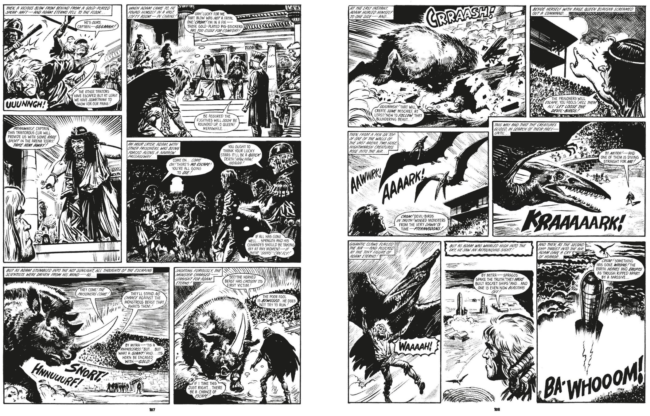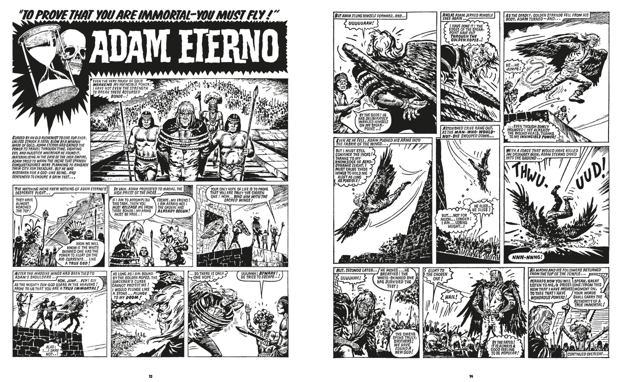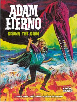 Lost in the early years of the stone age over 35,000 years before his own birth, Eterno roams amidst mammoths, neanderthals and dawn men, but must battle beast men armed with ray guns to foil a plan by alien colonisers. They seek to eradicate emerging humankind and take the world for their own, but Adam is greatly aided by prescient sage Kathon-the-Wise, who seems to see all his past and future secrets… and bears a remarkable resemblance to so many other wizards and mages the nomad of the ages has met…