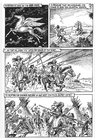 The decades-long battle between Apaches and Missionaries to control the slimy silver wellspring makes for a powerful – if cynical – tale; one full of the intoxicating artistry, spellbinding storytelling, and the mesmerising aura of authenticity that is Jackson’s most telling narrative tool. It’s all based on the ancient Texas stories and legends of ‘Blanco’ and ‘Negro Bultos’ (supernatural treasure mounds): a most fantastic story which should be, has to be true, if only because Jackson has drawn it. Moreover, it has inexplicably dropped out of print and has never been picked up for a movie. That alone is something really strange and sinister…
