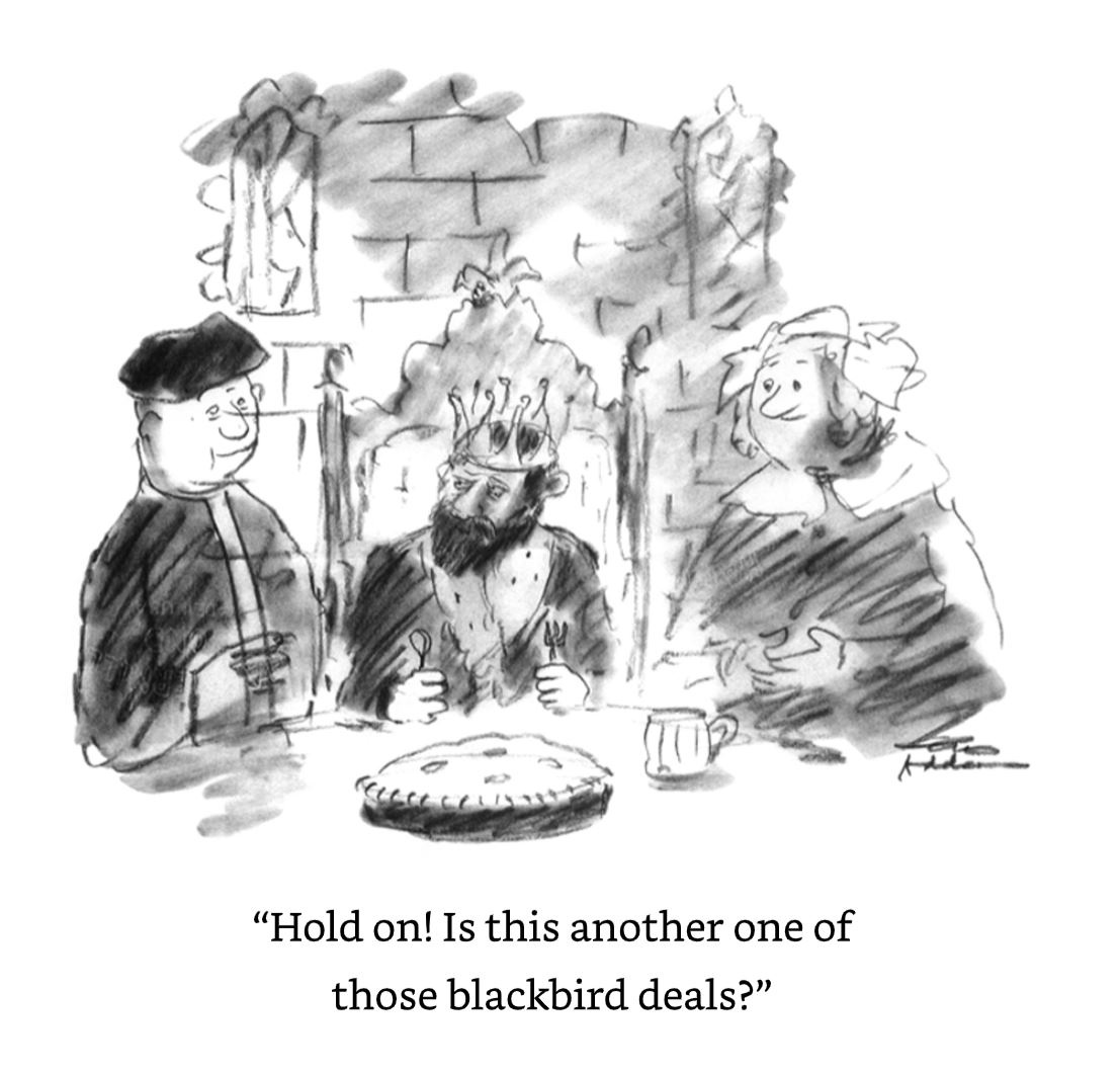 The next is utterly self-explanatory ‘Macaroni and Oysters’, ending the first course prior to commencing the ‘Second Platter’ – specifically ‘Black Puddings’ (Yanks call them “blood puddings” and they’re not wrong) and ‘Transparent Pie’ with ‘Boiled Salad of Fiddleheads’ (that’s newly sprouted ferns)…