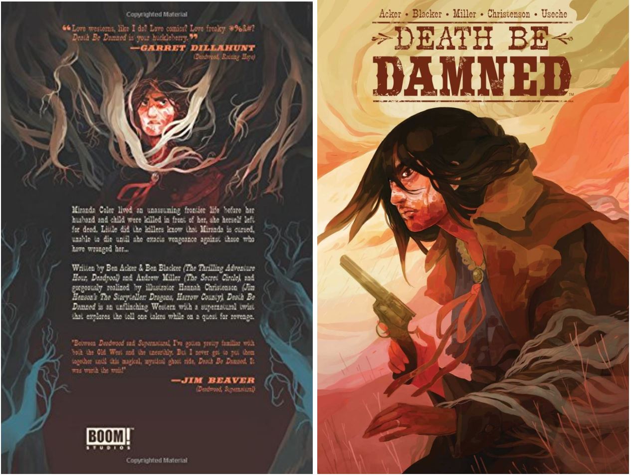 First seen as a 4-issue miniseries in 2017 written by Ben Acker, Ben Blacker (The Thrilling Adventure Hour podcast, Deadpool, Thunderbolts. Supernatural) & Andrew Miller (Backstrom, League of Pan, The Secret Circle), spooky sagebrush saga Death Be Damned is a deft and compelling addition to the growing, cross-fertilising genre of supernatural westerns. The series was visualised by celebrated illustrator Hannah Christenson (Harrow County, Mouse Guard, Jim Henson’s Storyteller) with colours by Juan Useche and letters from Colin Bell.