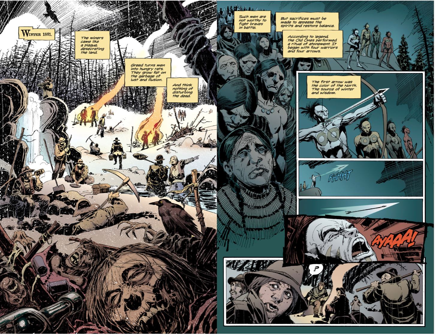 Told in parallel time periods and trenchant flashbacks, the drama begins in the snow-swamped Colorado Mountains of 1880 where a greedy trapper plunders Indian graves and finds gold. A year later, the sacred ground is utterly defiled, turned into a pit of depravity by dozens of prospectors ripping up the terrain in search of yellow metal.