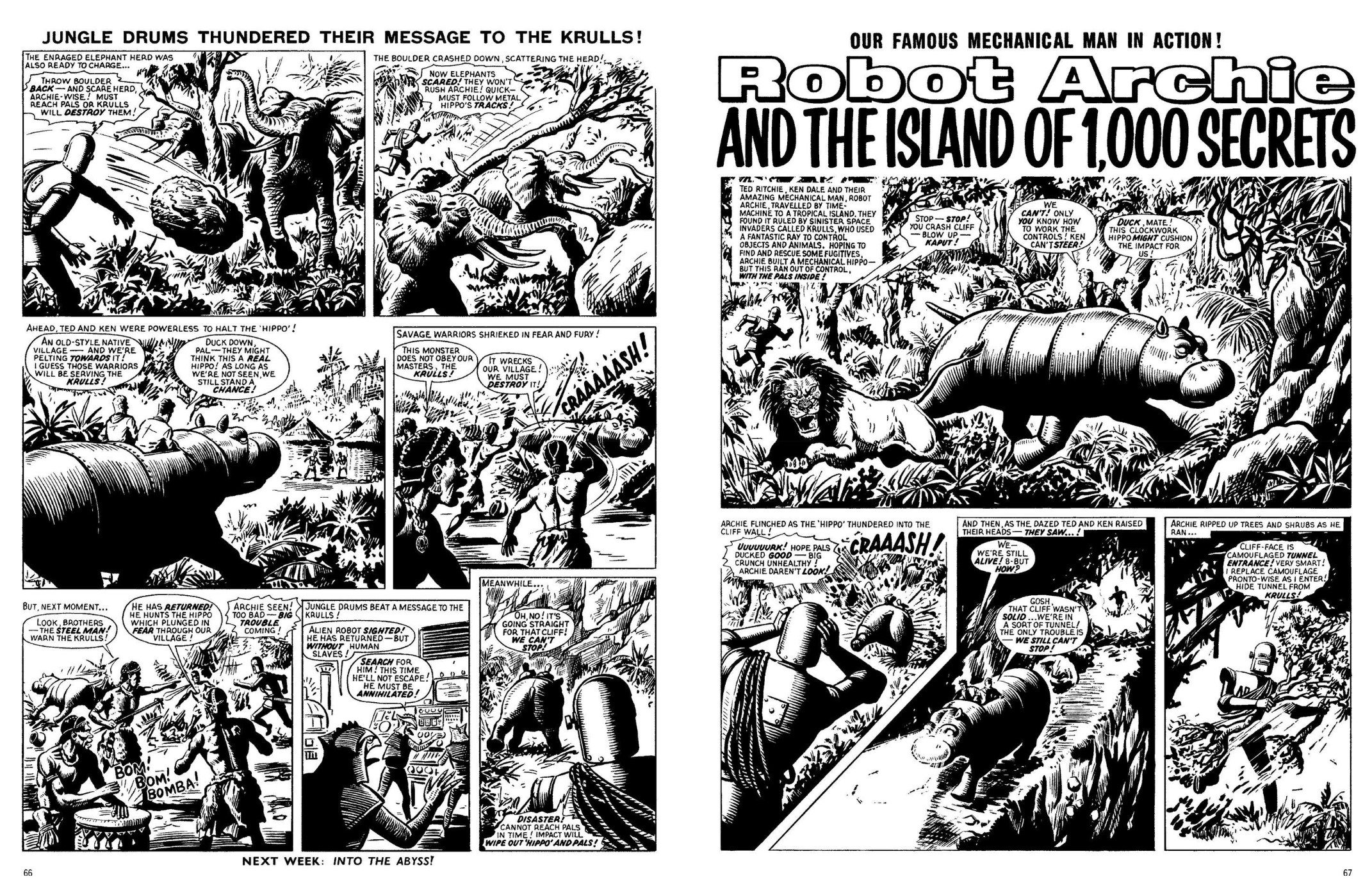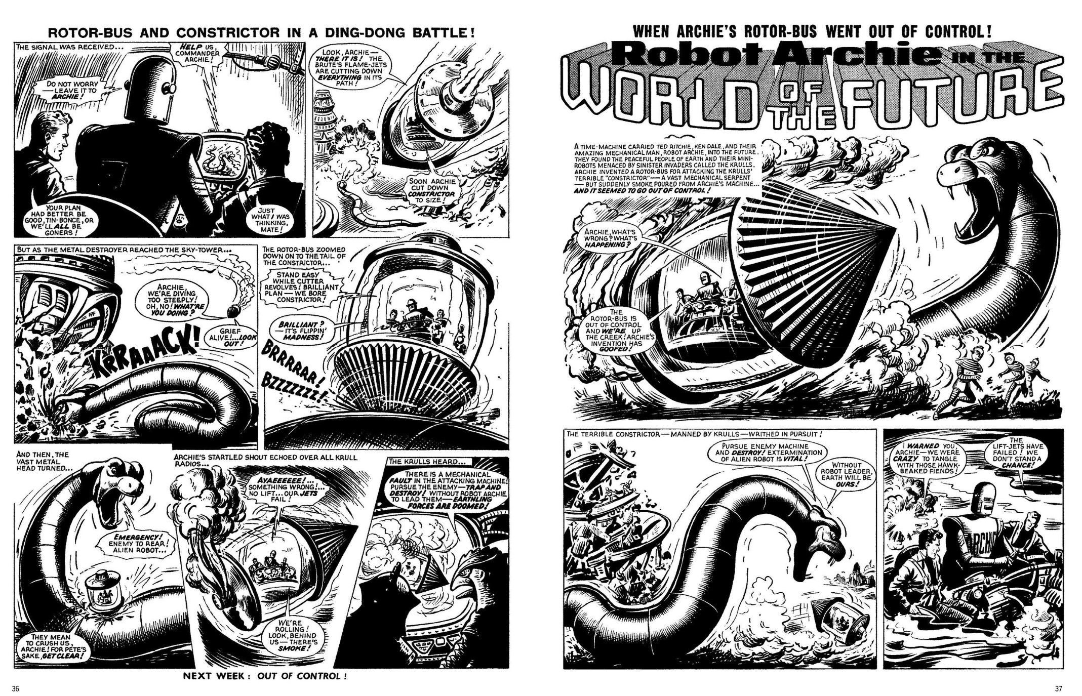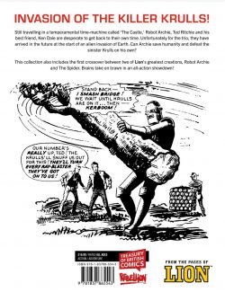 Reprinting stories from 18th January 1969 to 18th October 1969, plus yarns from Lion Annual 1971 and Lion Holiday Special 1980 these latterday adventures of explorer/ troubleshooters Ted Ritchie, Ken Dale and arrogant, smug, self-absorbed yet paternally benevolent super-robot Robot Archie resume and take an even more outrageous turn here.