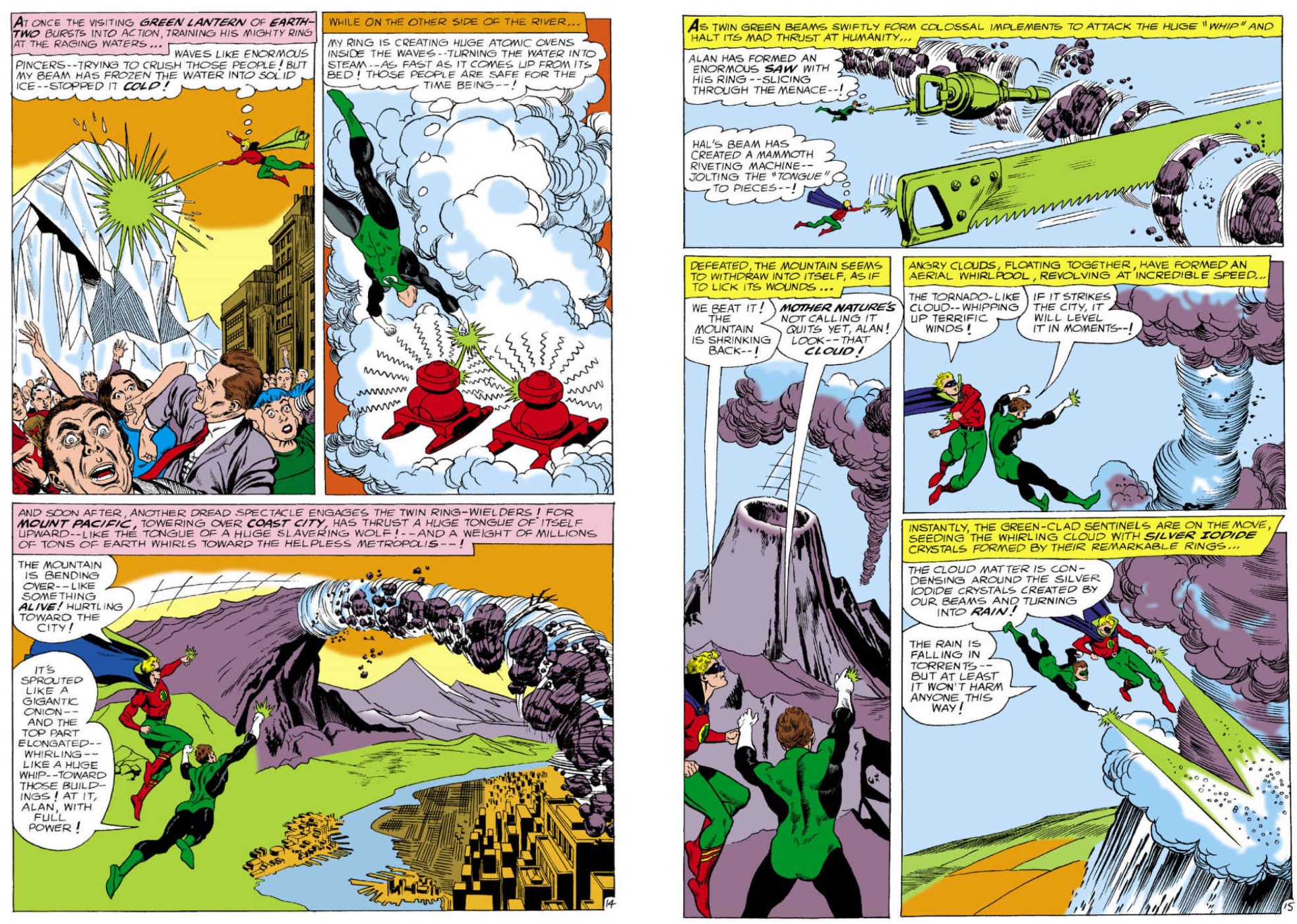 Now he was back and still asking the wrong question, with his efforts also endangering a parallel earth. Happily for creation, that world had its own vastly experienced Emerald Avenger, who pitched in, and was so good at crisis management that the Guardians offered him Hal’s job…