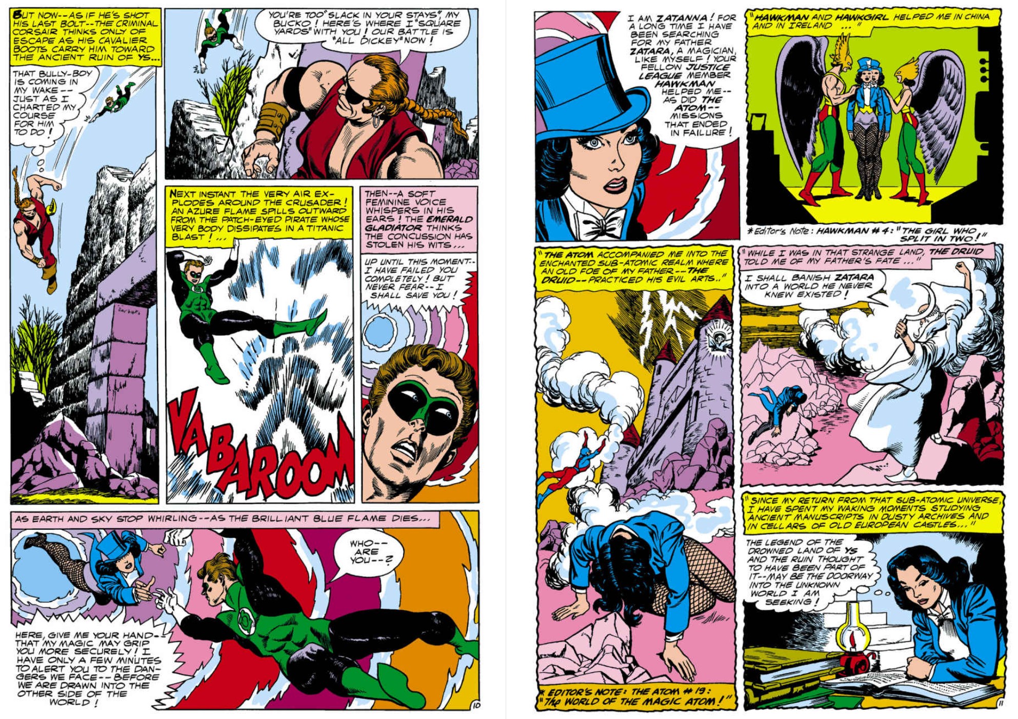 Next came ‘The Other Side of the World!’ wherein Fox continued a long-running experiment in continuity with a superb tale of time-lost civilisations and an extra-dimensional invasion by the Warlock of Ys co-starring peripatetic quester Zatanna the Magician as perfectly pictured by Kane & Greene.
