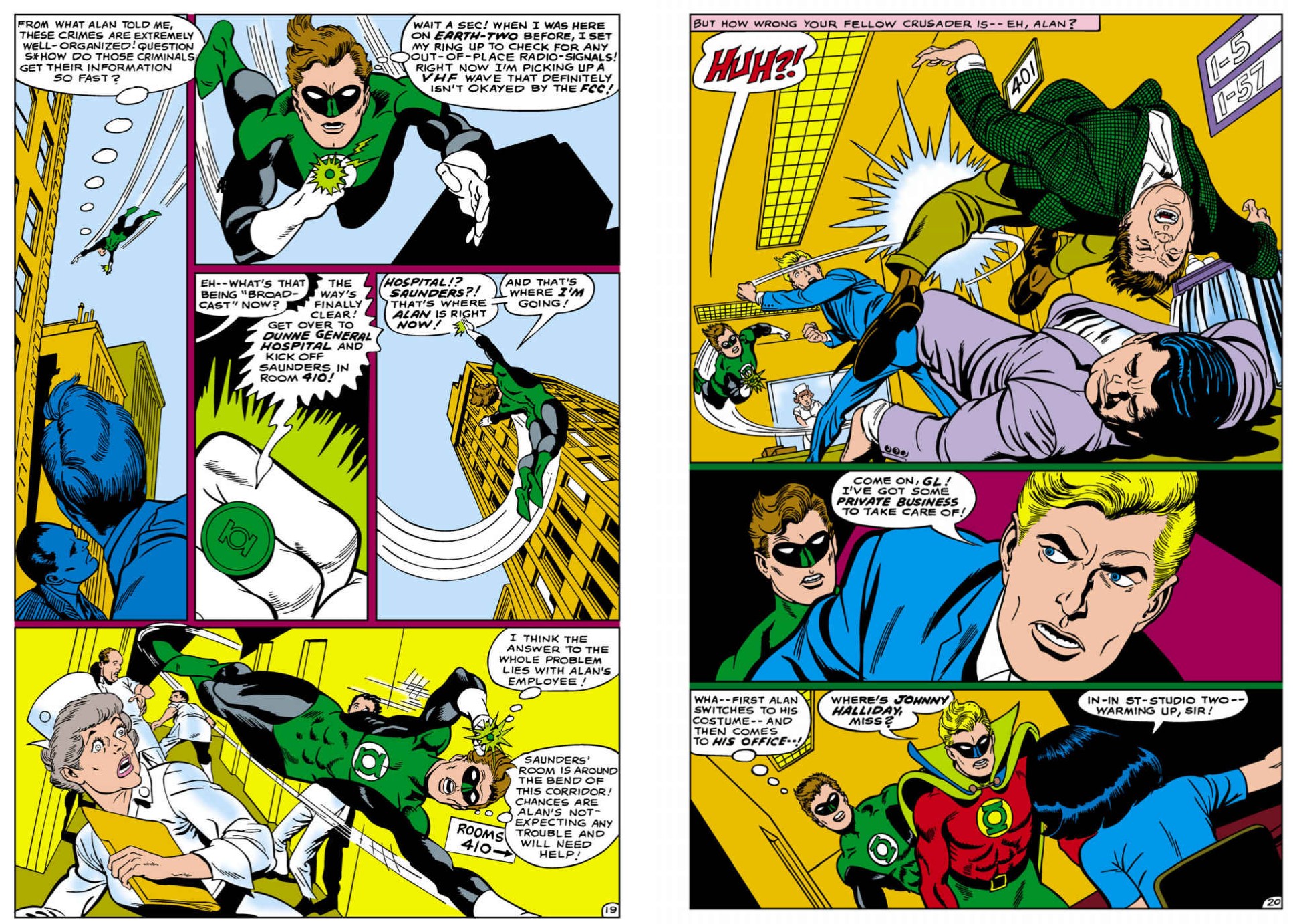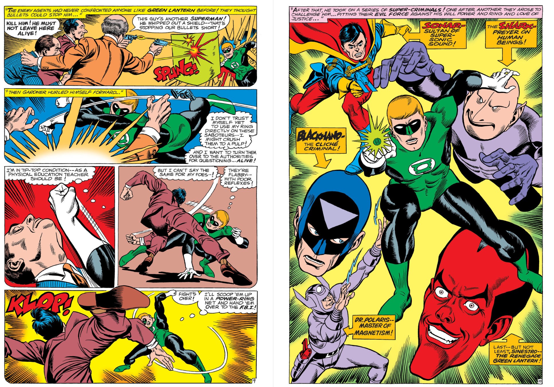Broome & Kane reunite for positively surreal, super-scientific saga ‘Menace in the Iron Lung!’ (GL #54), with a manic shut-in orchestrating a deadly remote war against the Viridian Avenger followed by an all-out attack on the Guardians and their operatives in ‘Cosmic Enemy Number One’. The trans-galactic assassinations conclude in ‘The Green Lanterns’ Fight for Survival!’ and the appointment of a second Earthling to the now depleted Corps.