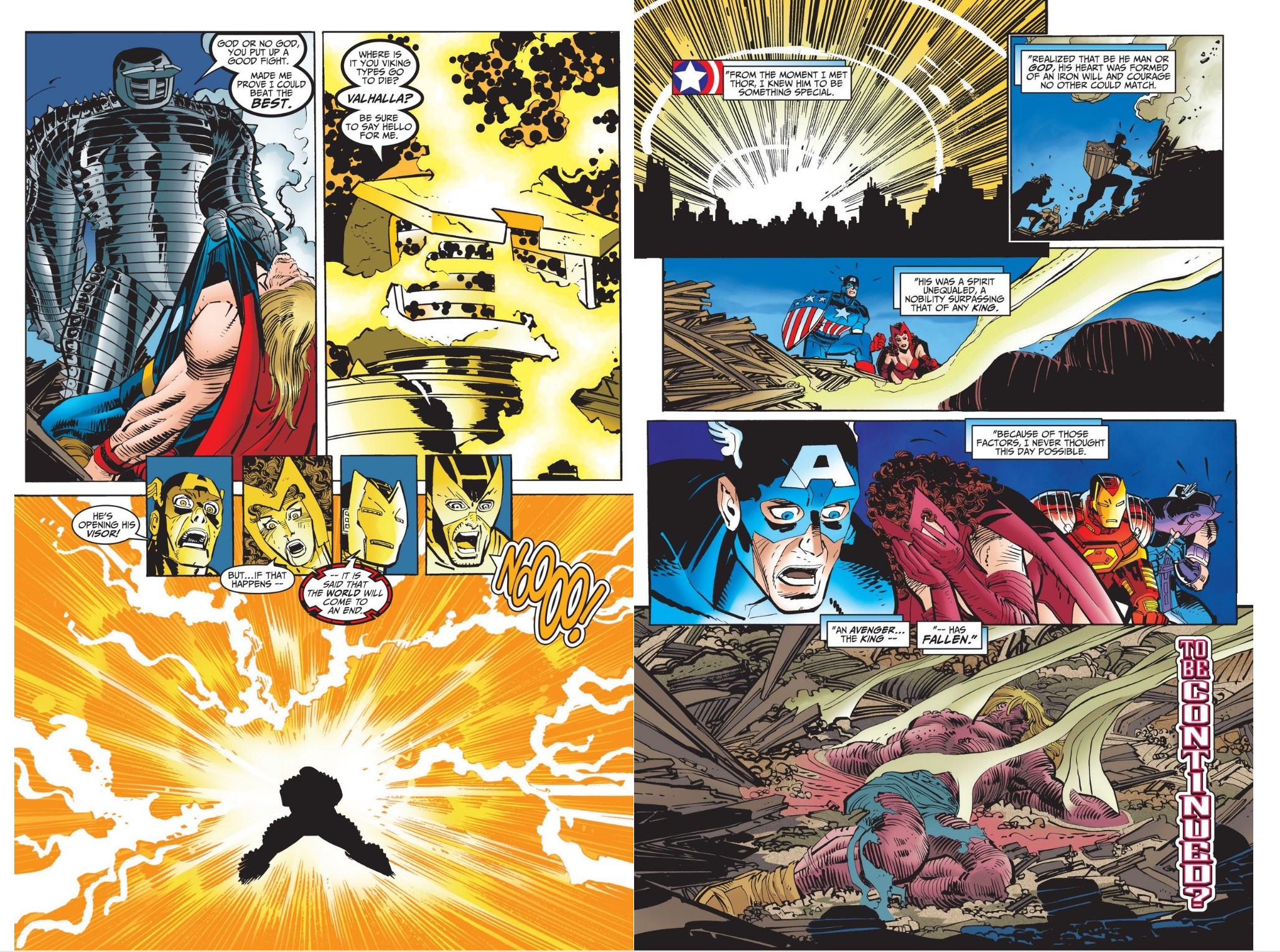 Despite the best efforts of the World’s Mightiest Heroes, the carnage is shattering and people die. People like Olson… and Thor…