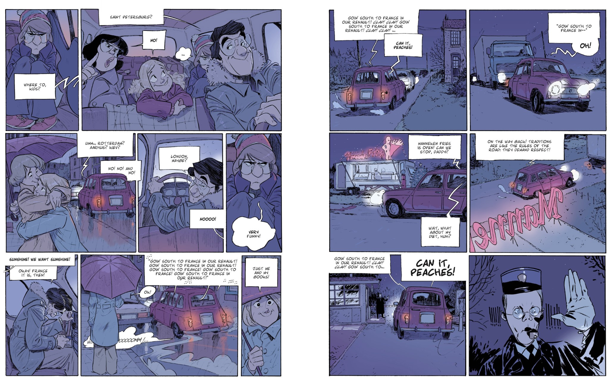 If you’re British – and old enough – this series (six translated albums thus far, plus a French omnibus edition) will echo revered family sitcoms like Bless This House or Butterflies and generational ads starring the “Oxo Family”. (If that description doesn’t fit you, I pity your browsing history if you look up any of that…). The rest of you in need of an opening (but unfair) comparator could break out the Calvin and Hobbes collections and re-examine the bits with his embattled parents when the kid’s out of the picture…