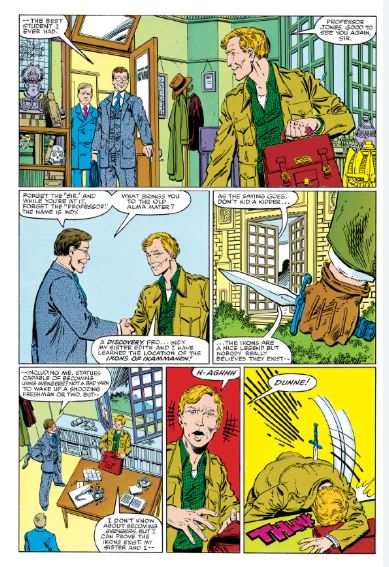 David Michelinie, Ron Frenz & Bulanadi’s ‘Gateway to Infinity!’ sees our archaeological adventurer en route to Stonehenge, courtesy of the US government, as a ring of Nazi spies again fail to kill him. Hitler’s spies and parapsychologists are still hunting preternatural artifacts and the crystal cylinder uncovered at the ancient monument definitely qualifies. English professor (of antiquities not ENGLISH English) Karen Mays dates it to the Triassic period, millions of years before Man evolved, so the murderous Aryans will stop at nothing to make it theirs…