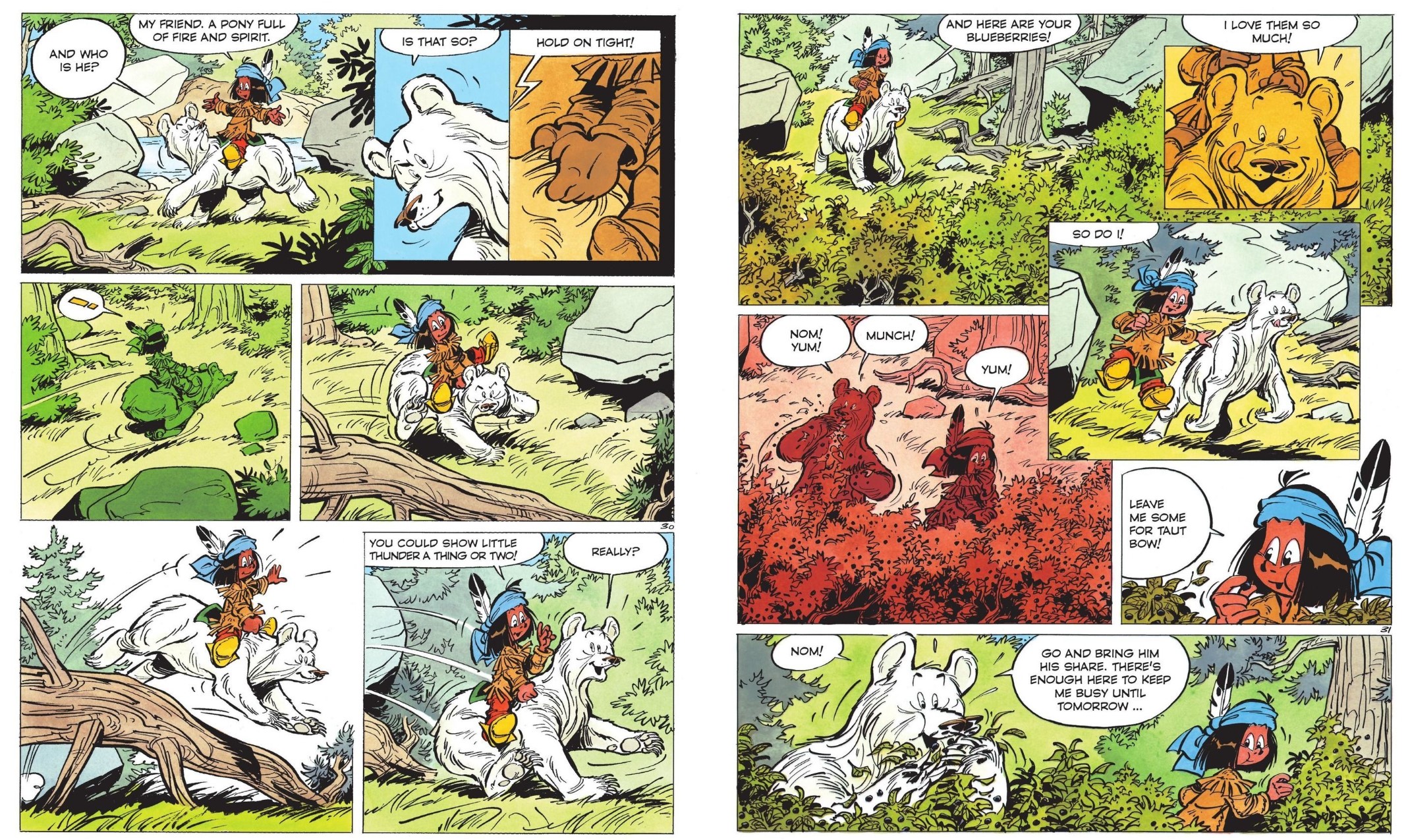 In 1998, Yakari et l‘Ours fantôme became the 24th European album, but as always, content and set-up are both stunningly simple and sublimely accessible, affording new readers total enjoyment with a minimum of familiarity or foreknowledge required…