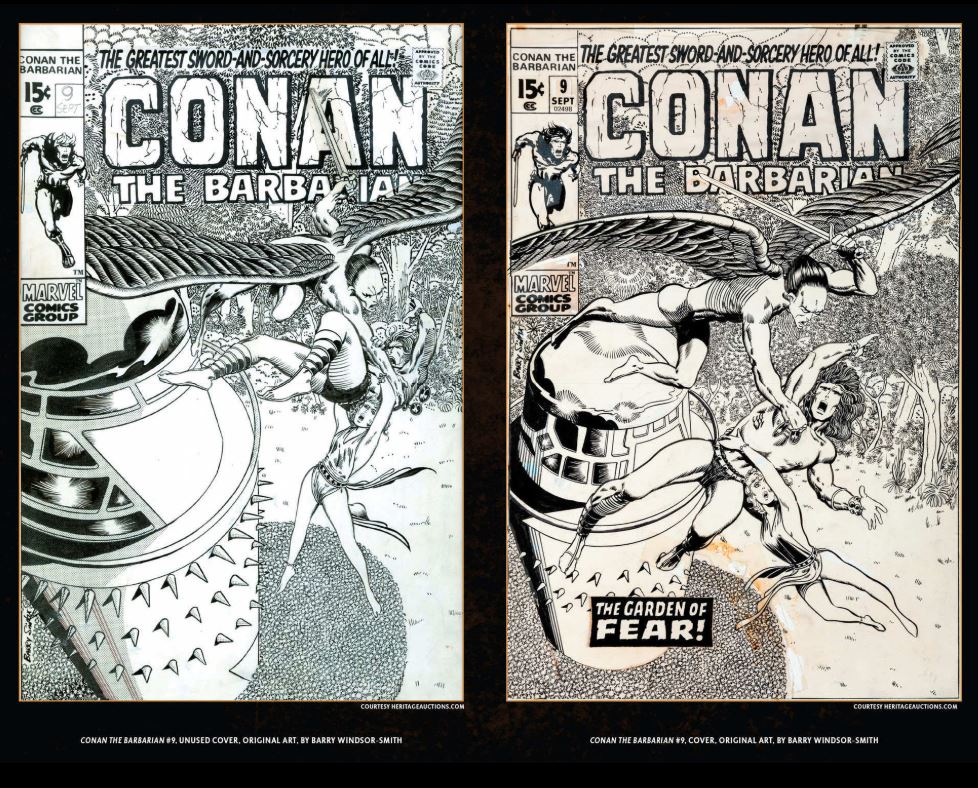 Also on show are cover galleries of the Marvel Books reprint paperback line and the Conan Classic comics series – all by Windsor-Smith – plus even before-&-after alterations demanded by the Comics Code Authority on the still contentious and controversial title.