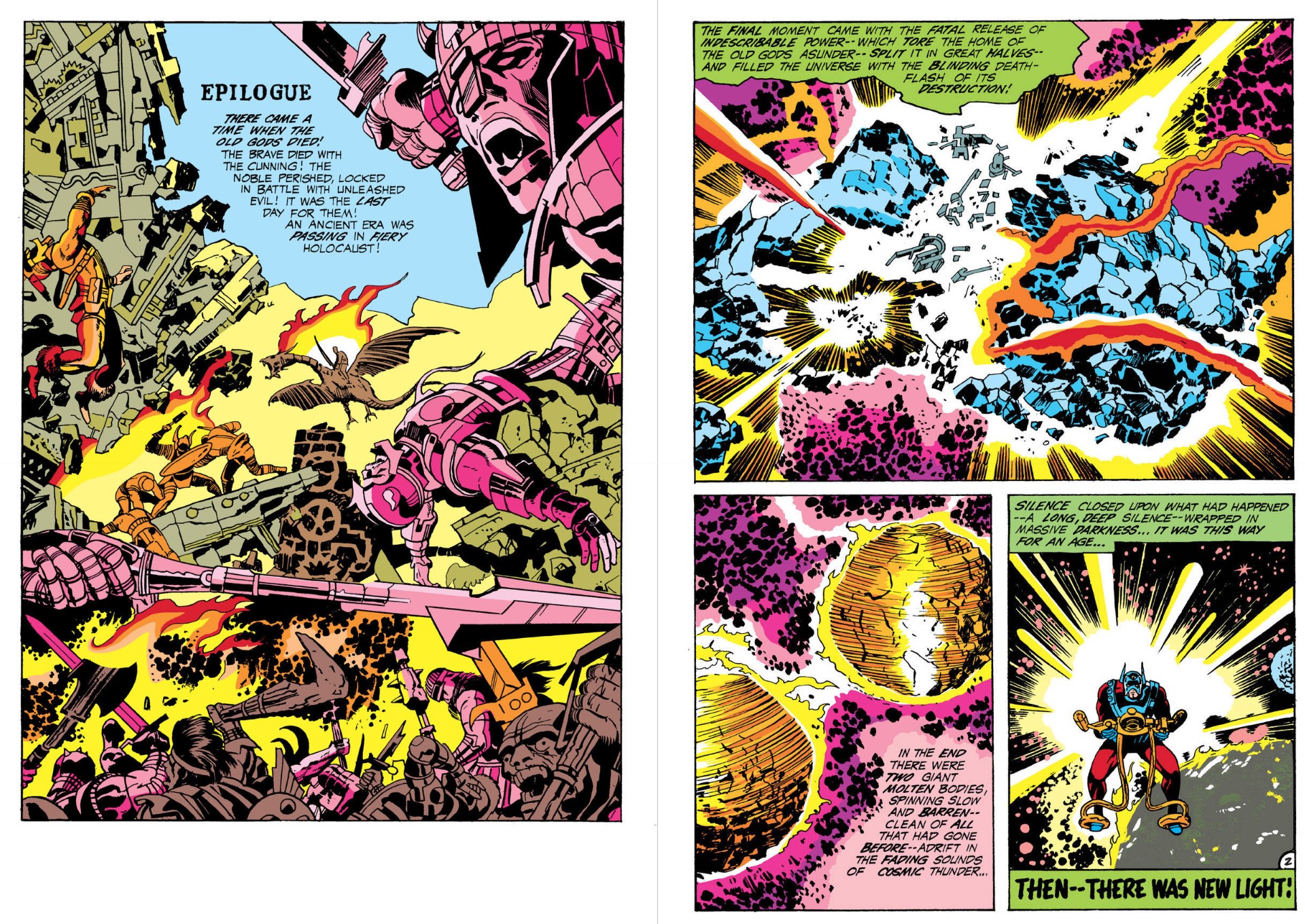 Cover-dated February/March 1971 and on sale 55 years ago today, the premiere issue infamously opened with an ‘Epilogue’ and closed with a ‘Prologue’ as Kirby & inker Vince Colletta declared that ‘Orion Fights for Earth!’