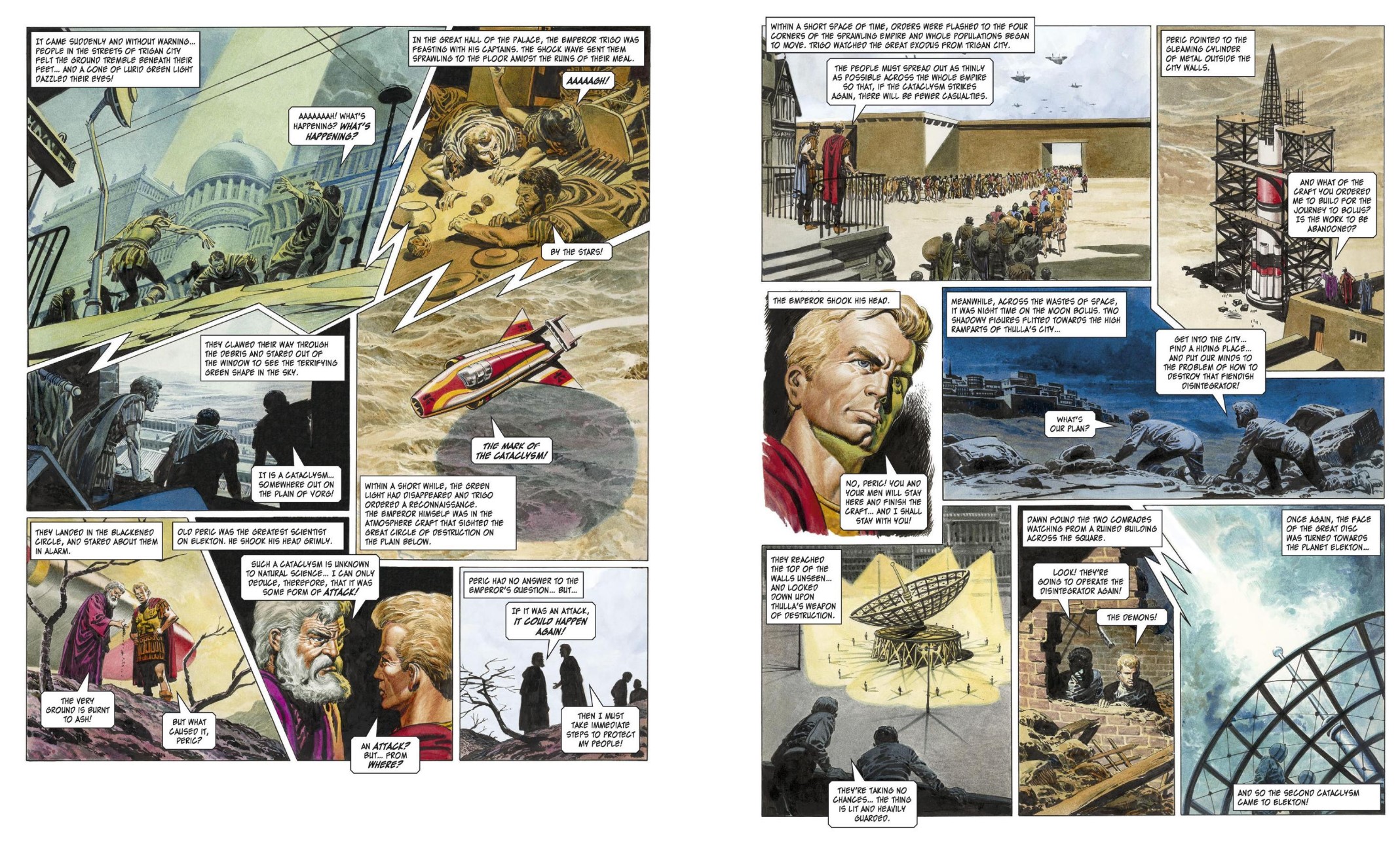 As the Trigans rush to construct a rescue vessel, Thulla brutally seizes the moon people’s city and commences the second part of his plan: building a colossal ray cannon to destroy all life on Elekton. As Trigo’s ship takes off – too late to stop devasting blasts from Bolus – Janno & Keren are forced to desperate measures to save their people from the murderous madman…