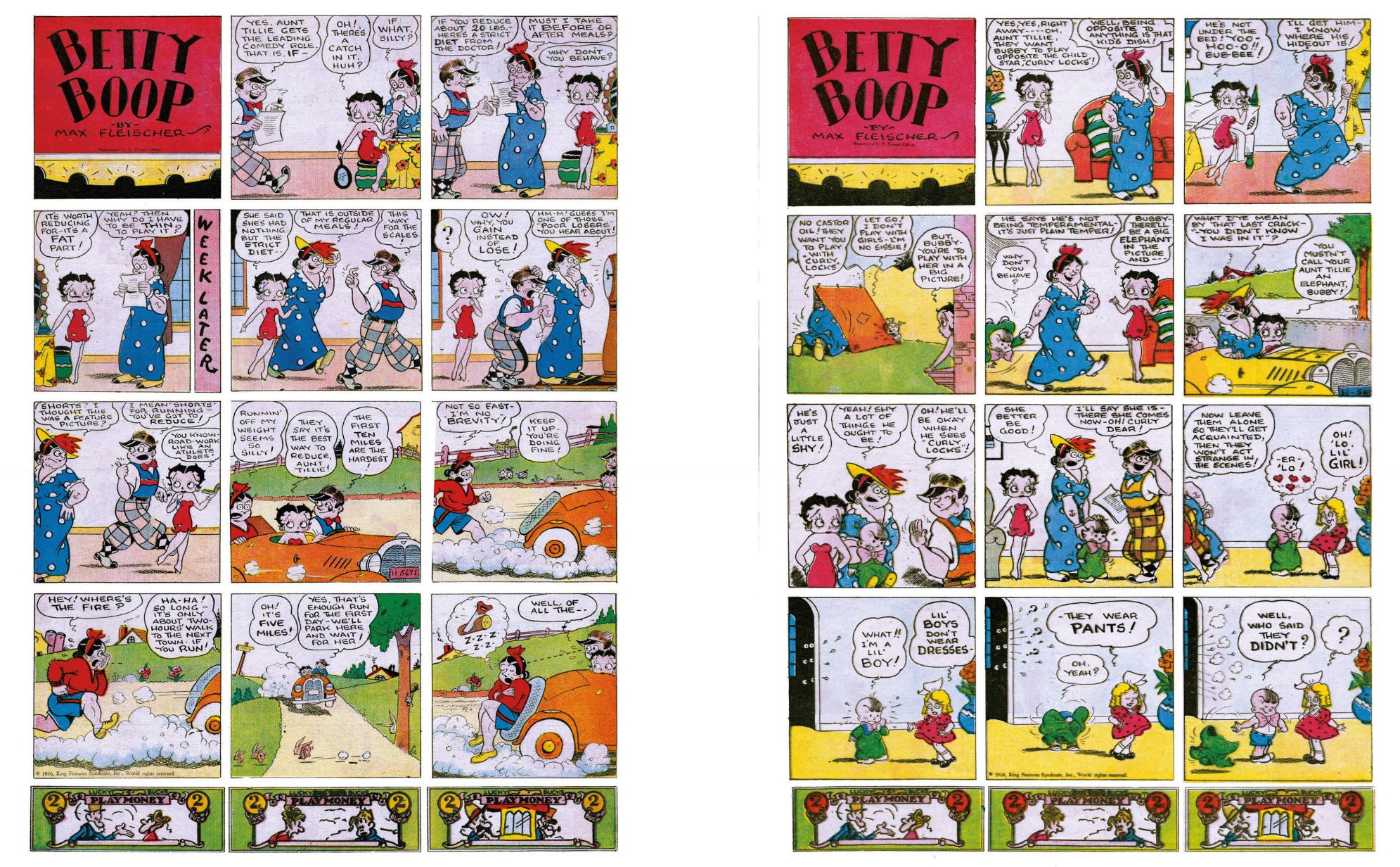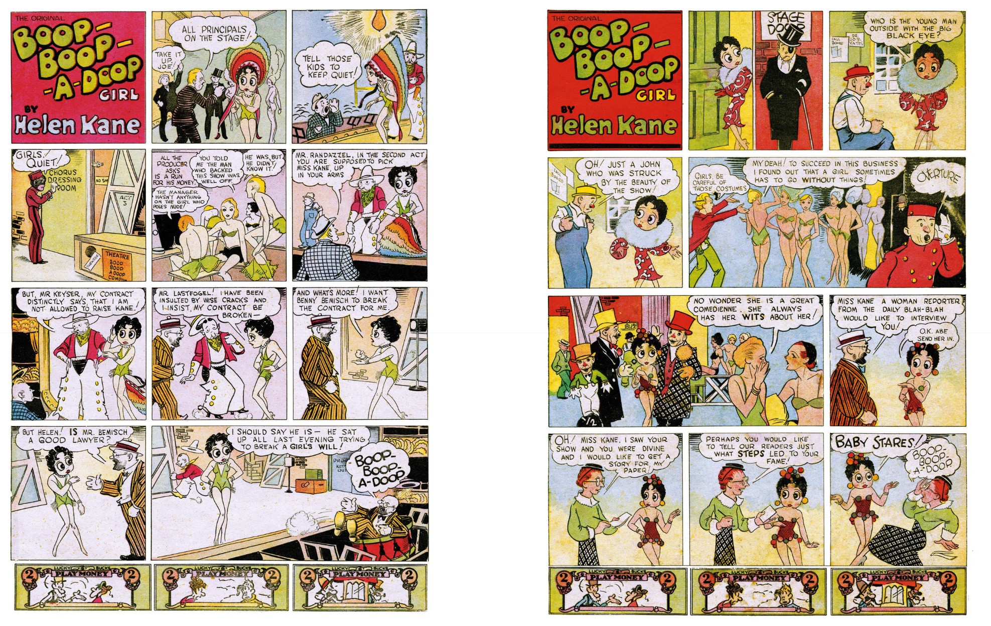Saucy singer Helen Kane – who had performed in a sexy “Bow-esque” Brooklyn accent throughout the 1920s and was billed as “The Boop-Oop-A-Doop Girl” – famously sued for “deliberate caricature” in 1932. As well as a renowned actor, she was sharp enough to briefly steal the show and actually become the star of the first Betty newspaper strips…