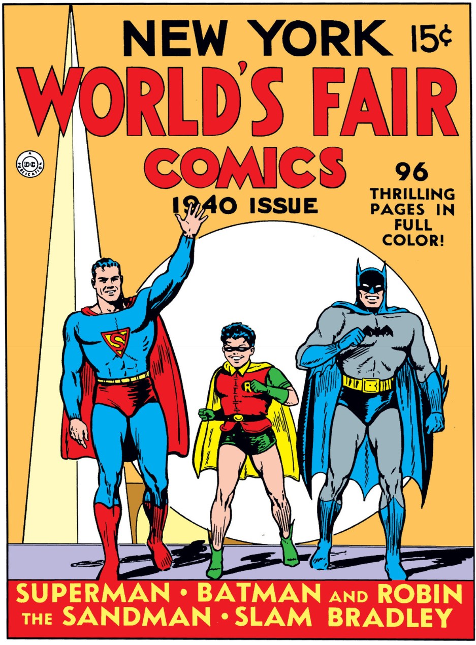 This incredible panorama of torrid tales opens with gangsters attempting to plunder jewels from exhibits at the biggest show on earth. Taken from premium package New York World’s Fair #2, ‘Superman at the 1940 World’s Fair’ is credited to Siegel & Schuster, but actually illustrated by Burnley who also provided the first ever pairing of the Man of Tomorrow with Dynamic Duo Batman and Robin on the cover to drag readers in…
