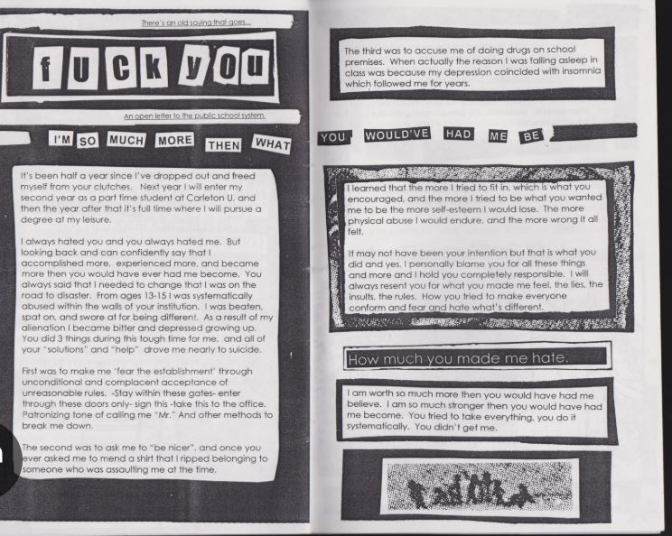 In the decades over which his hand-crafted publication has been released (as photocopy pamphlet, offset magazine and even audio-mag) his writing and art have covered every aspect of the life of the contemporary outsider from self-exploratory introspection, reportage, criticism, oral history, music journalism, philosophical discourse and even unalloyed fiction – from epigram to novella, news bulletin to chatty remembrance – usually in a distinctive hand-lettered style all his own, augmented by cartoons, photo-collage, comics and a dozen other monochrome techniques beloved of today’s art-house cognoscenti.