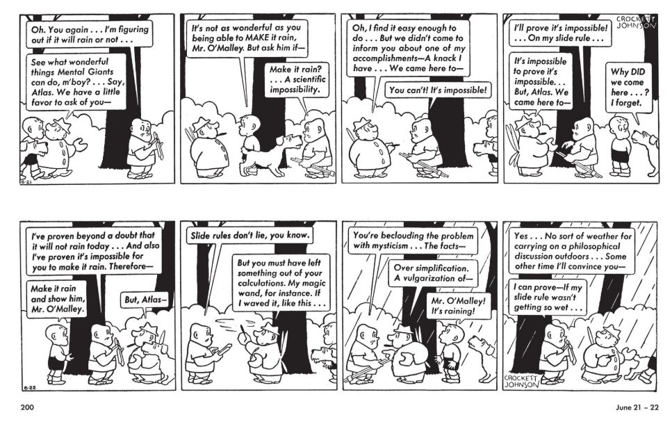 Crockett Johnson’s outlandish regimented 4-panel daily was the brainchild of a man who didn’t particularly care for comics, but who – according to preeminent strip historian Ron Goulart – just wanted steady employment. David Johnson Leisk (October 20th 1906 – July 11th 1975) was an ardent socialist; passionate anti-fascist; gifted artisan and brilliant designer who had spent much of his working life as a commercial artist, Editor and Art Director.