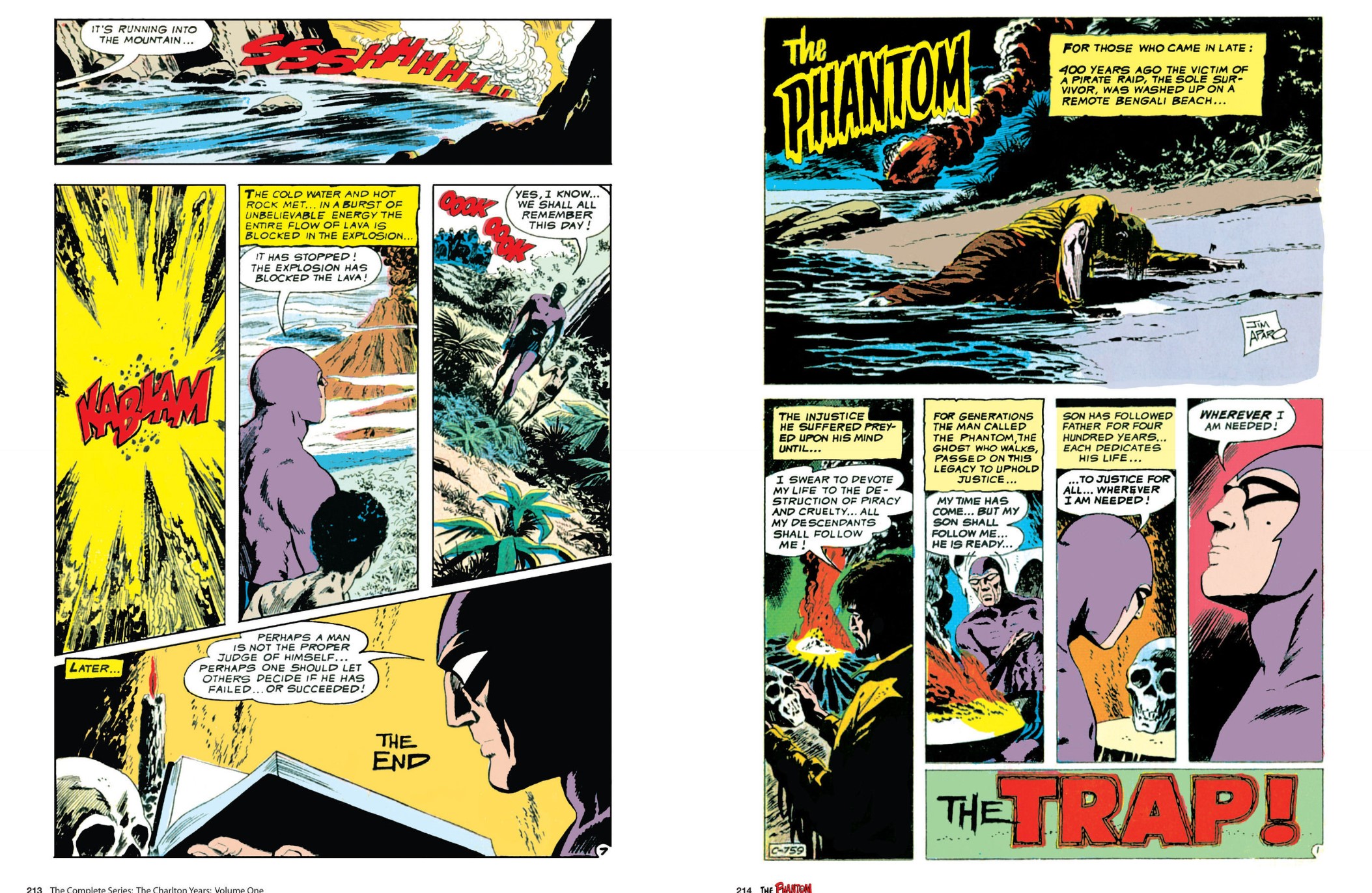 This splendid full-colour hardcover and/or eBook gathers the contents of The Phantom #30-38 (originally released between February 1969 and June 1970) and opens with an erudite Introduction from Christopher Irving relating all you need to know about ‘The Phantom and Charlton Comics’, compellingly augmented by the first of many pages of original art by Jim Aparo.