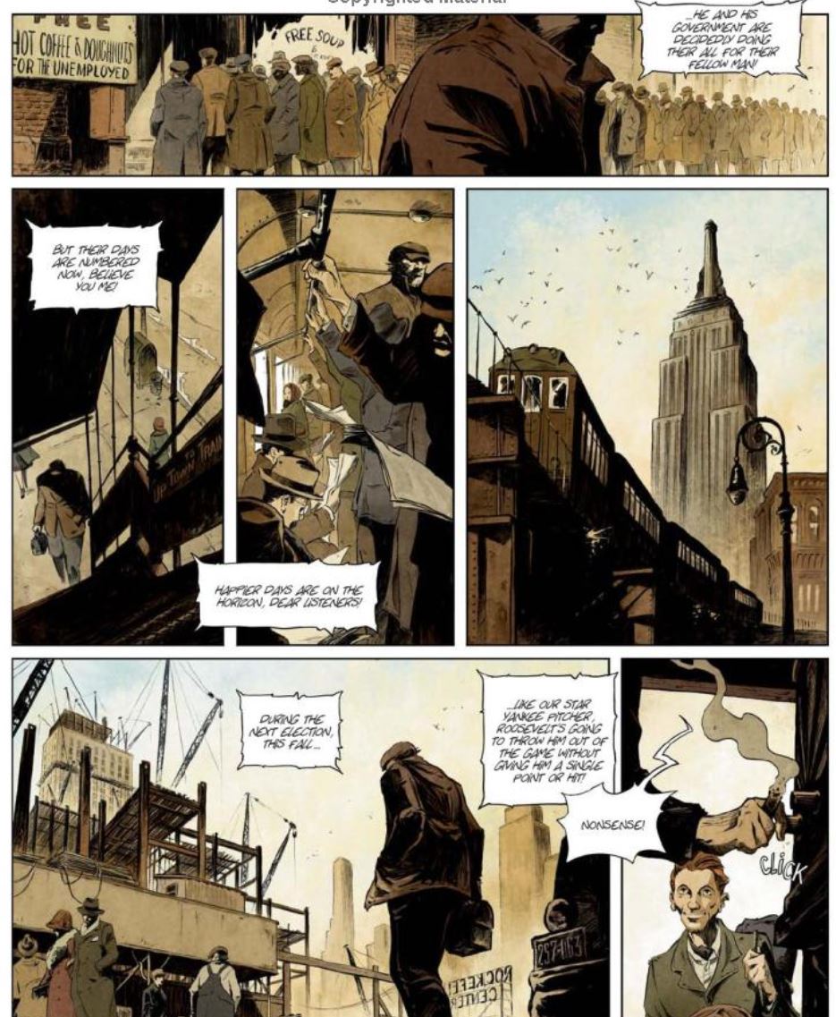 As a purported land of promises and untapped opportunity, America has always fascinated storytellers – especially comics-creators – from the “Old World” of Europe: an inclination and interest that has frequently delivered potent and rewarding results. This continentally-published yarn by self-taught, multi-disciplined, multi award-winning French-born Québecois auteur Mikaël (Harlem, Junior l’Aventurier, Rapa Nui, Promise) was first released by Dargaud in 2018 as twinned albums before breaking into English via a monolithically oversized hardback (229 x 305mm) edition that got the entire story done-in-one.