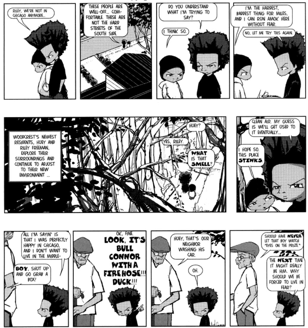 The Boondocks was always fast, funny, thought-provoking, funny, ferociously socially aware and created for a modern black readership. And Funny.