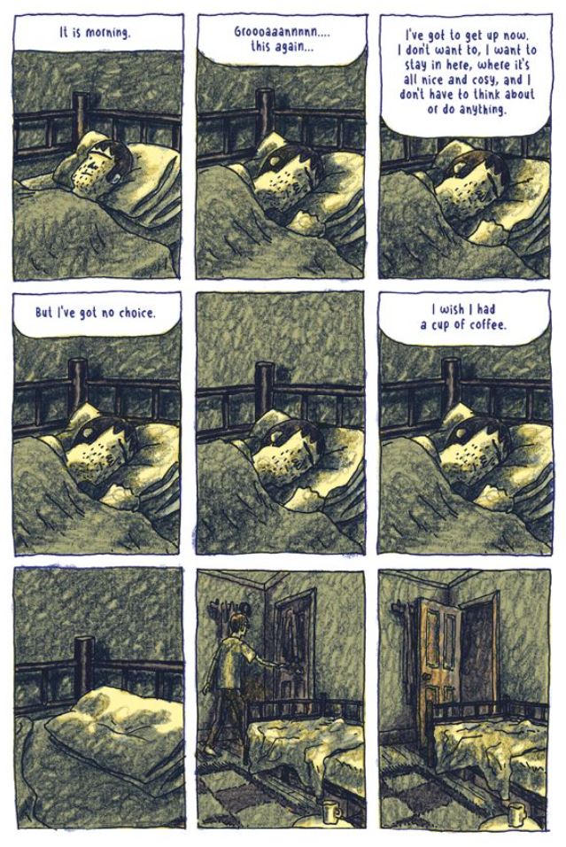 His days are a roundabout of listening, peeking, and seeking to be unseen by his friendly, sweet old landlady/flat mate Caroline. It’s not her… it’s him…