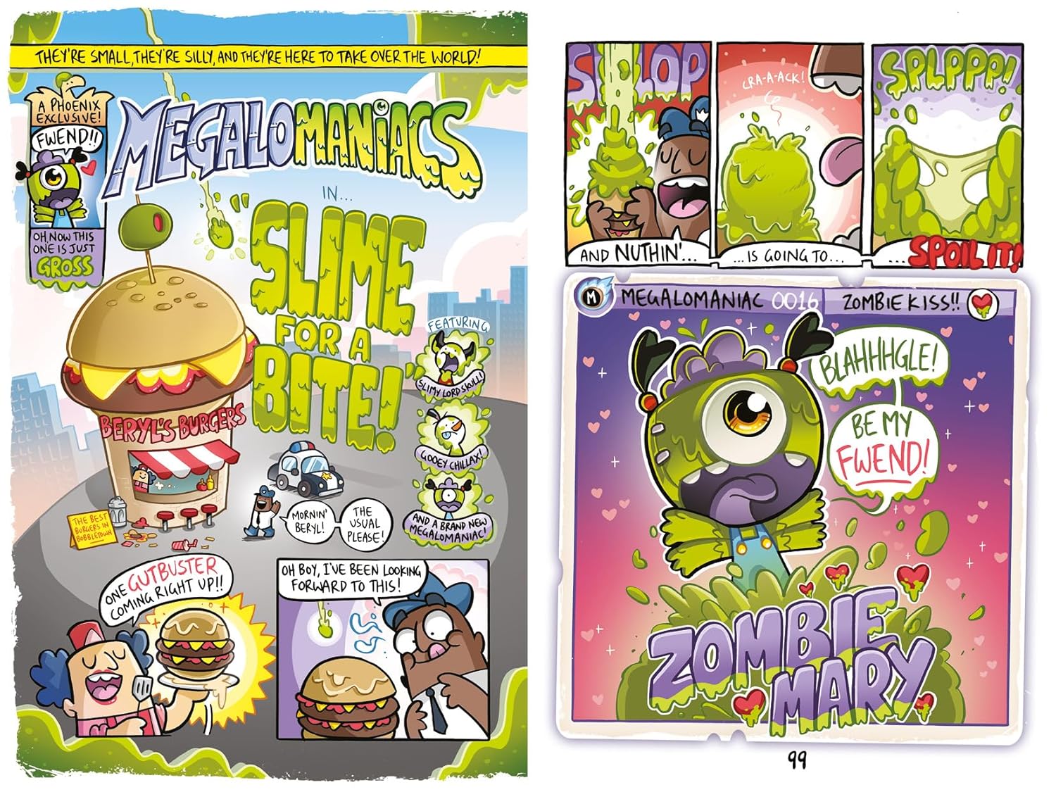 Things get nasty in ‘Slime for a Bite!’ as Zombie Mary stumbles into town in search of new – but necessarily living – fwends: an offer Lord Skull and Chillax are delighted to decline, before the star voyagers discover the delights of go karts in ‘Mega Racers’ and the Mayor of Bobbletown gets organised enough to mount a resistance effort…