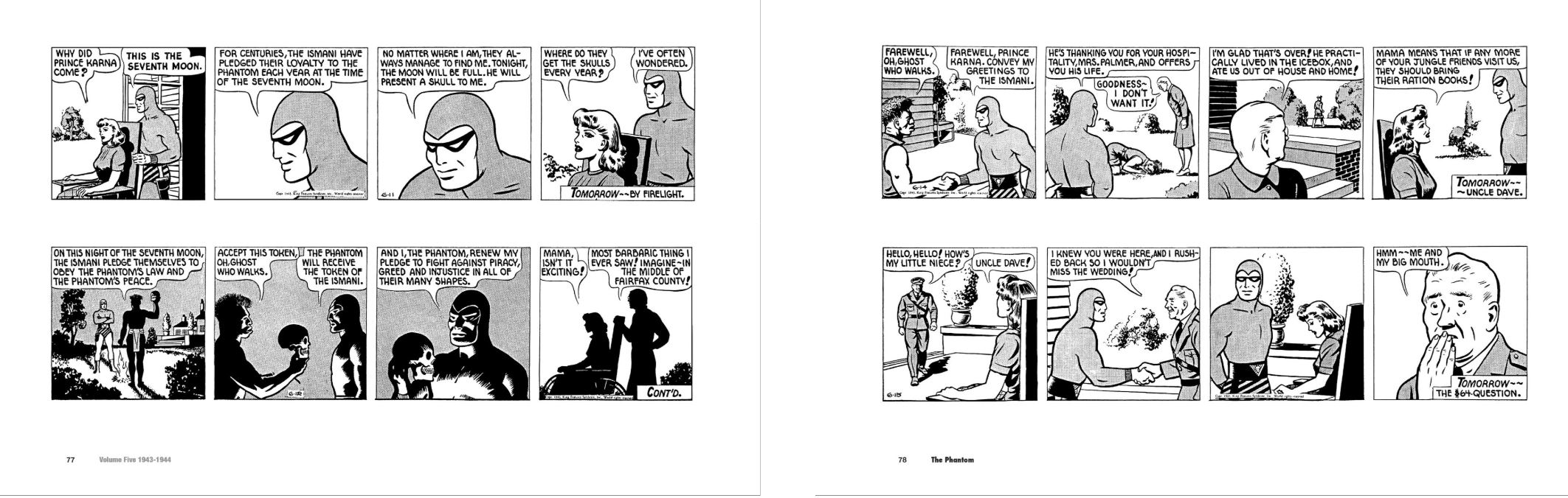 For such a long-lived, influential series, in terms of compendia or graphic collections, “the Ghost Who Walks” was quite poorly served in the English language market (except in the Antipodes, where he’s always been accorded the status of a pop culture god). Lots of companies have sought to collect strips from one of the longest continually running adventure serials in publishing history, but in no systematic or chronological order and never with any sustained success. That has been mostly rectified recently by archival specialists Hermes Press who launched curated collections in 2010, making nearly all the various canonical iterations accessible to the devoted.