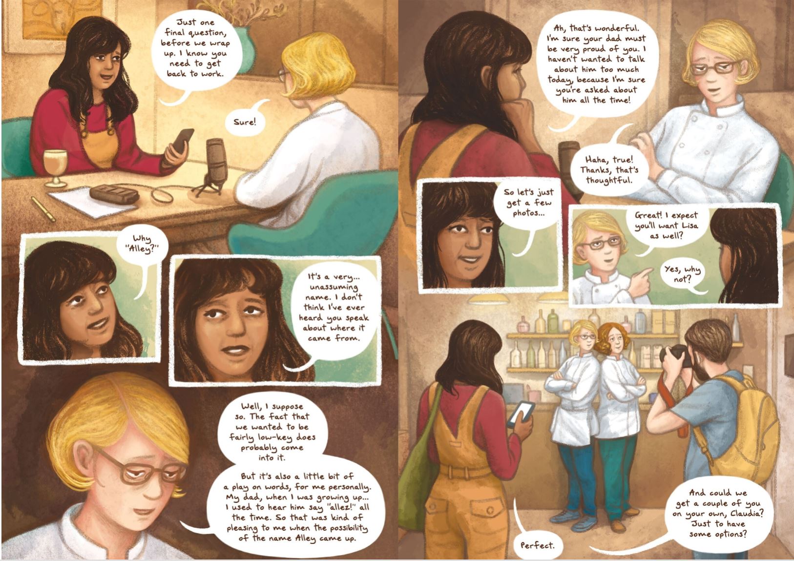 Never good with emotional conflict, asking for help or meddling interference, “Claude” has nonetheless opened her own up-&-coming bistro – The Alley – in insalubrious Southwark. Ignoring unsought parental guidance throughout, after five long years she is making waves: catching the favourable attention of Food Critics and enjoying commercial progress despite the economic situation, fickle tastes, self-doubt and that ever-present unwanted family oversight.