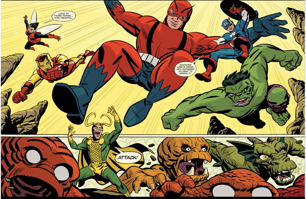 Sadly for the schemer, Iron Man, Ant-Man and The Wasp also caught the redirected SOS. As heroes converged to search for the Jade Giant, they realised something was amiss, leading led their first assembled assault on Loki. It was the beginning of a legend and over the next seven issues (plus guest shots in other titles!) it sparked heroes coming and going, and villains without peer setting new standards for wickedness…