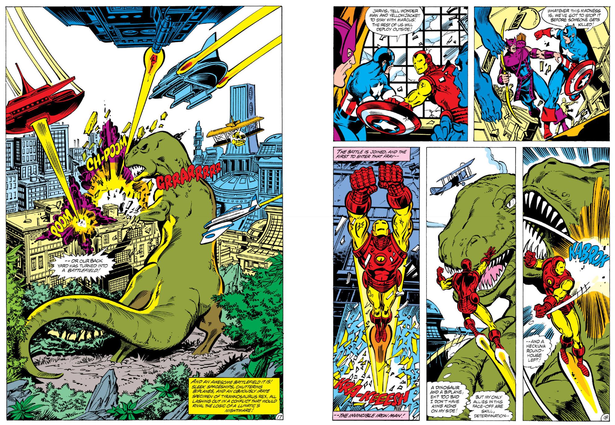 The tale is cut short as back-up strip ‘Bully!’ by Michelinie, Roger Stern, Pérez & Day explores the off-duty life of butler Edwin Jarvis as he improves his home neighbourhood with a little human-scaled heroism and defiance in the face of insurmountable odds…