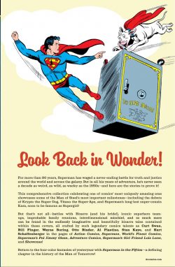 The stories originated in Action Comics #151, 162, 223, 232, 234, 236, 239, 242, 247, 249, 252, 254-255; Adventure Comics #210; Showcase #9; Superman #65, 79-80, 96-97, 118, 125, 127, Superman’s Girl Friend Lois Lane #8; Superman’s Pal Jimmy Olsen #13, 19 and World’s Finest Comics #68, 74, 75 which span the entire decade as the Adventures of Superman TV show propelled the Man of Tomorrow to even greater heights of popularity.