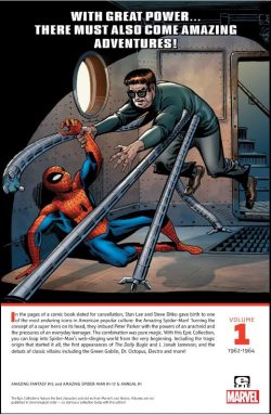 This compelling and economical full-colour trade paperback and digital compilation re-presents the early run of Amazing Spider-Man #1-17, plus Annual #1 and that auspicious tale from Amazing Fantasy #15 (spanning August 1962 through October 1964): allowing newcomers and veteran readers to relive some of the greatest moments in sequential narrative.