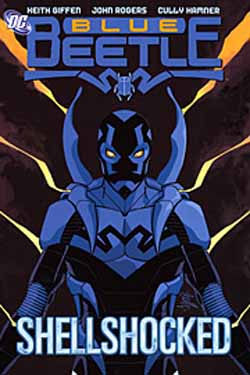 At the height of the Infinite Crisis (ISBN: 978-1-4012-0959-9) El Paso high-schooler Jaime Reyes finds a strange blue jewel shaped like a bug. That night when he’s asleep it attaches itself to his back transforming him into a bizarre beetle-like warrior. He’s quickly swept up in the chaos and joins Batman and other heroes in a space battle.