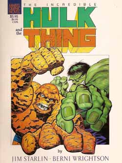 This one is full-on Marvel Madness and a wonderfully comedic outing for two of the industry’s biggest names. Released in 1987 it teamed old friends and young turks Jim Starlin and Berni Wrightson on a big kids dream project as Marvel’s top monstrous strongmen the Hulk and the Thing are abducted by a cosmic civil servant of the Federation of Matriculon. He needs a couple of tough guys for a bit of Repo work.