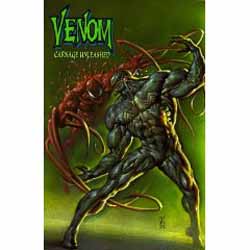 At one stage the symbiote went into breeding mode, creating a junior version of itself that merged with Cletus Kasady, a totally amoral and completely deranged psycho-killer. Calling him/itself Carnage, it tore a bloody swathe through New York before an army of superheroes caught him and his equally noisome “familyâ€.